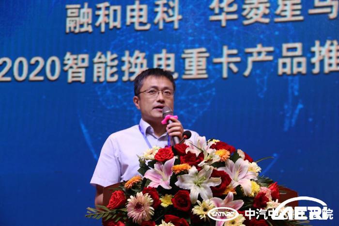 應華菱星馬汽車(集團)股份有限公司(以下簡稱“華菱星馬”)劉漢如董事長的邀請,中汽研(天津)汽車工程研究院有限公司(以下簡稱“工程院”)黨委書記、院長高繼東出席融和電科&華菱星馬以“能量魔方 共贏發展 智電未來”為主題的智能換電重卡產品推介會。