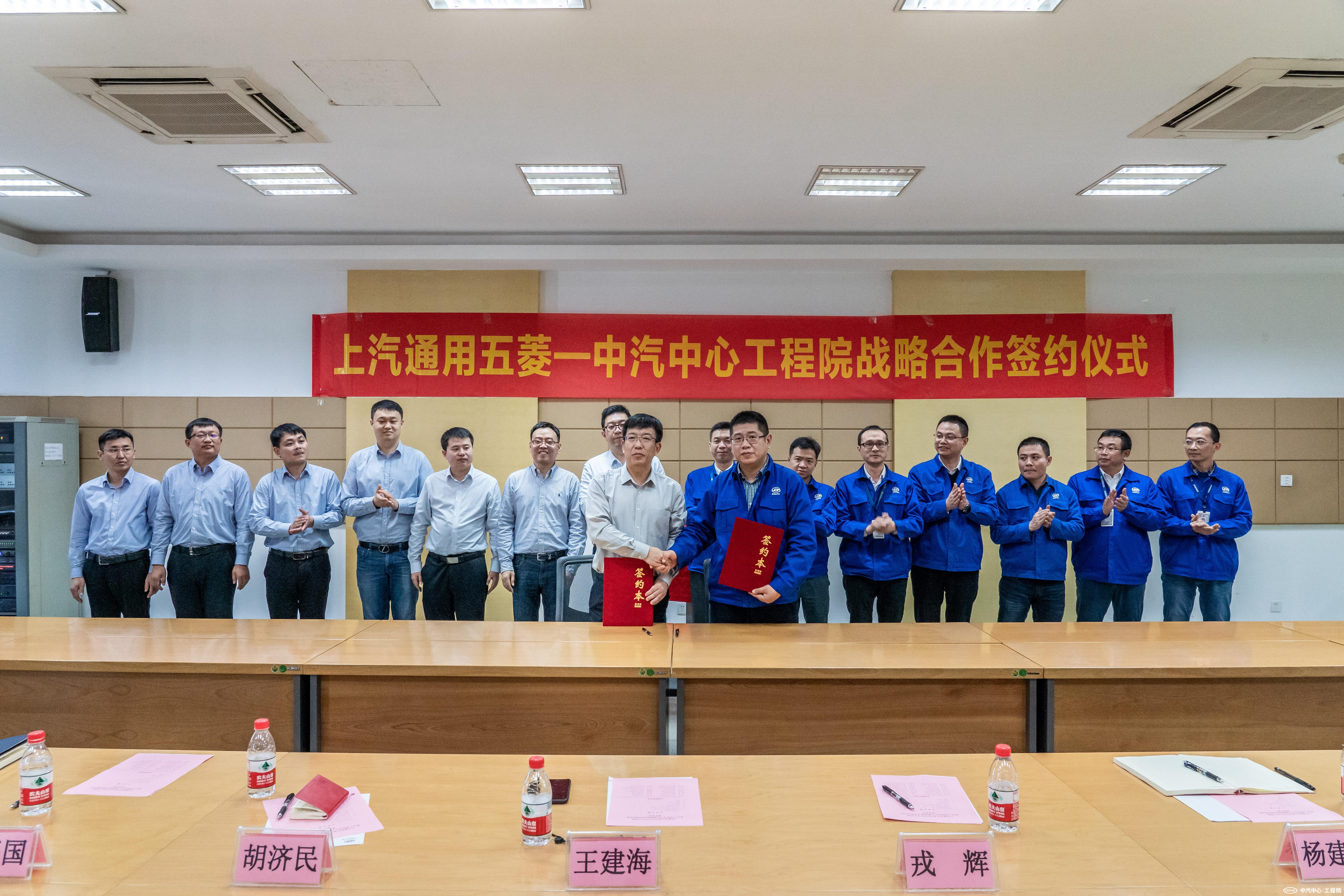 最后,在雙方團(tuán)隊(duì)的共同見證下,王建海、呂俊成分別代表中汽中心工程院和上汽通用五菱簽署戰(zhàn)略合作意向書,共同揭牌成立“聯(lián)合工程技術(shù)中心”。
