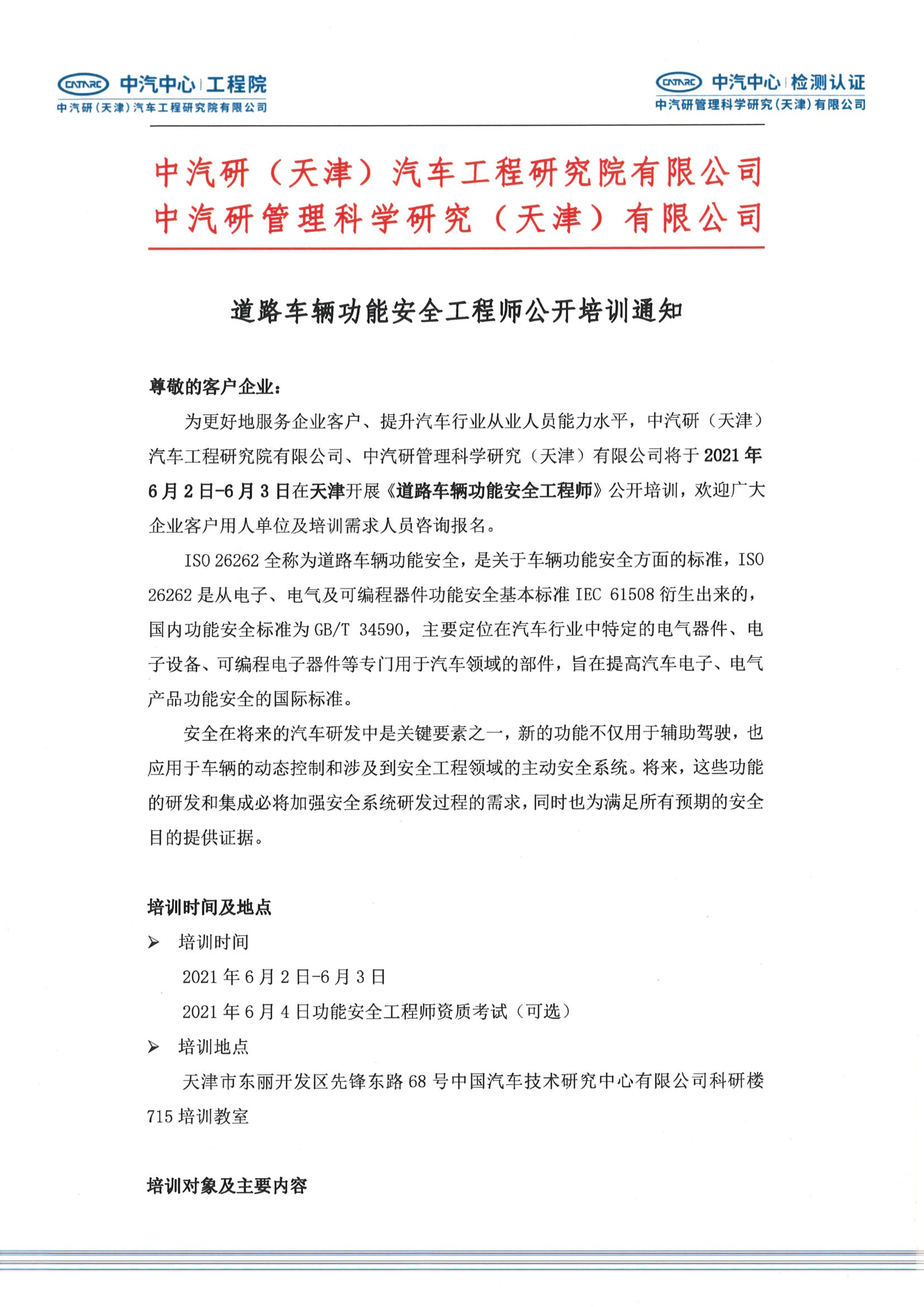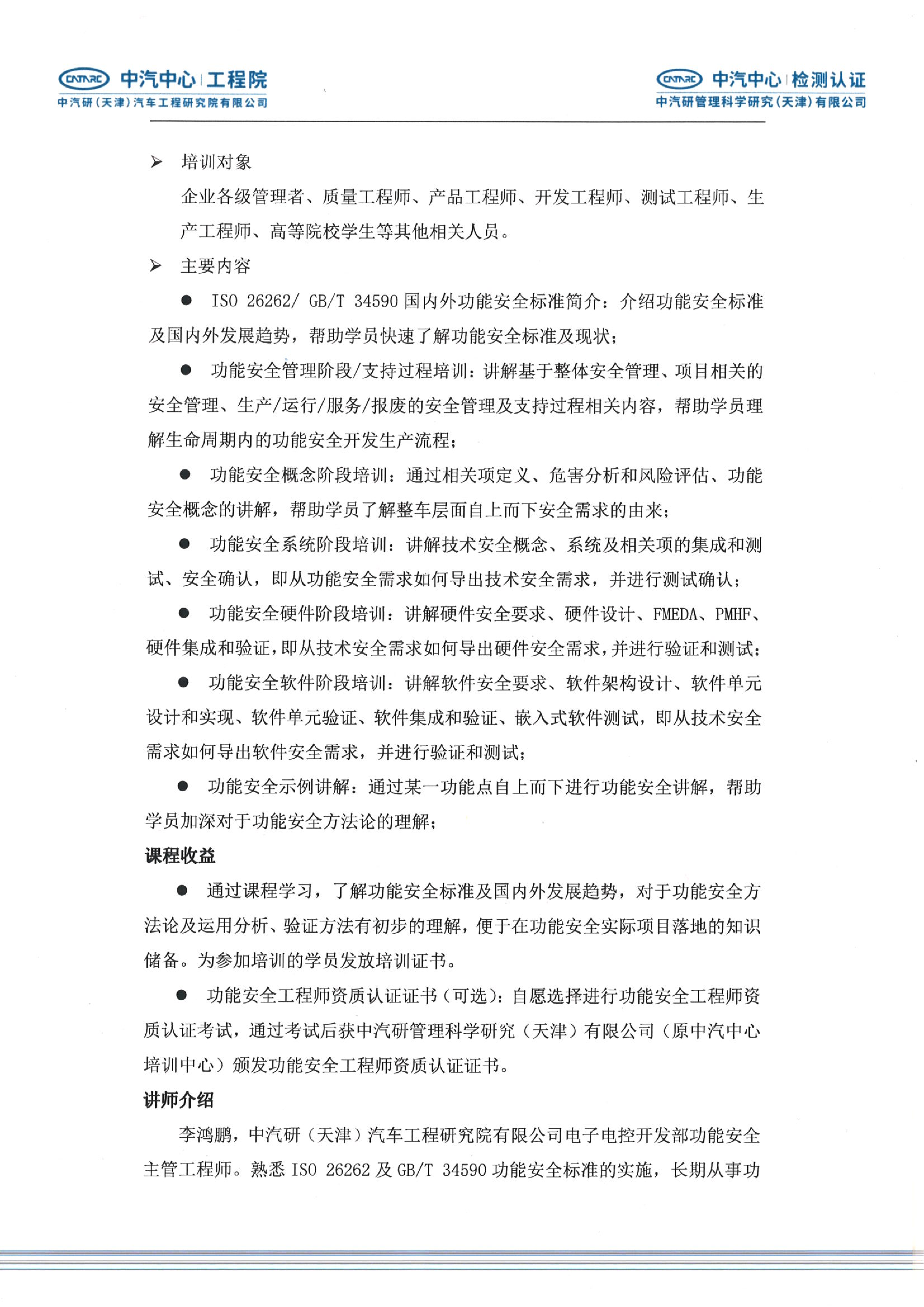 道路車輛功能安全工程師公開培訓通知