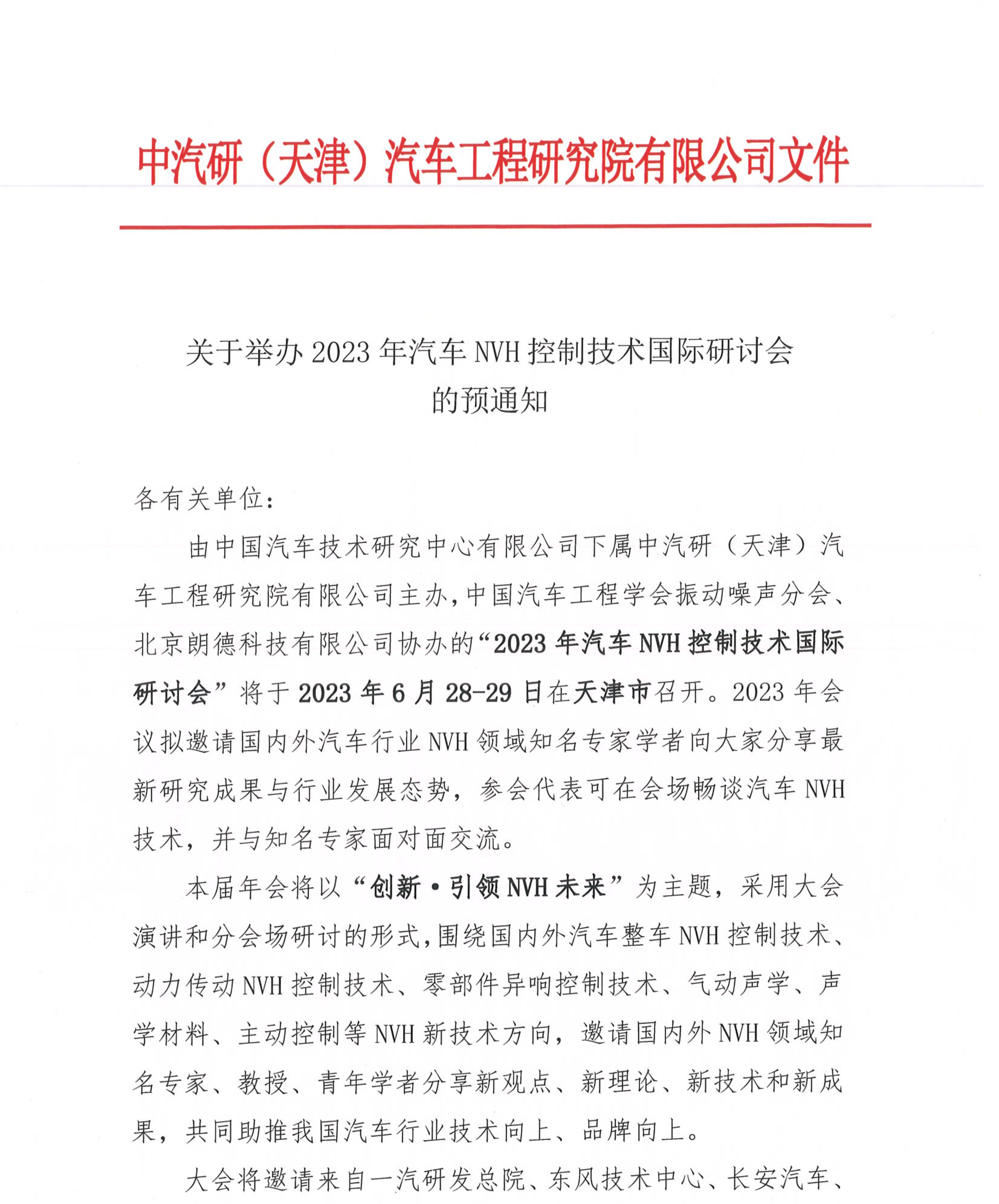 關于舉辦2023年汽車NVH控制技術國際研討會的預通知