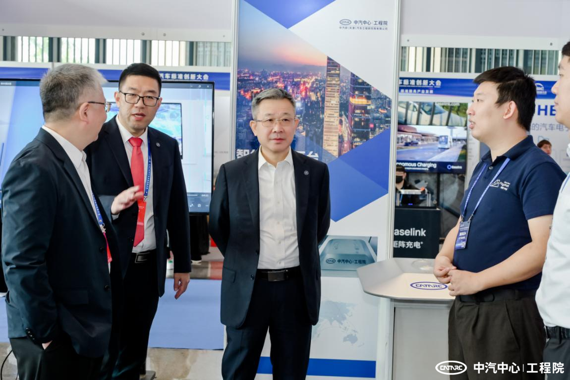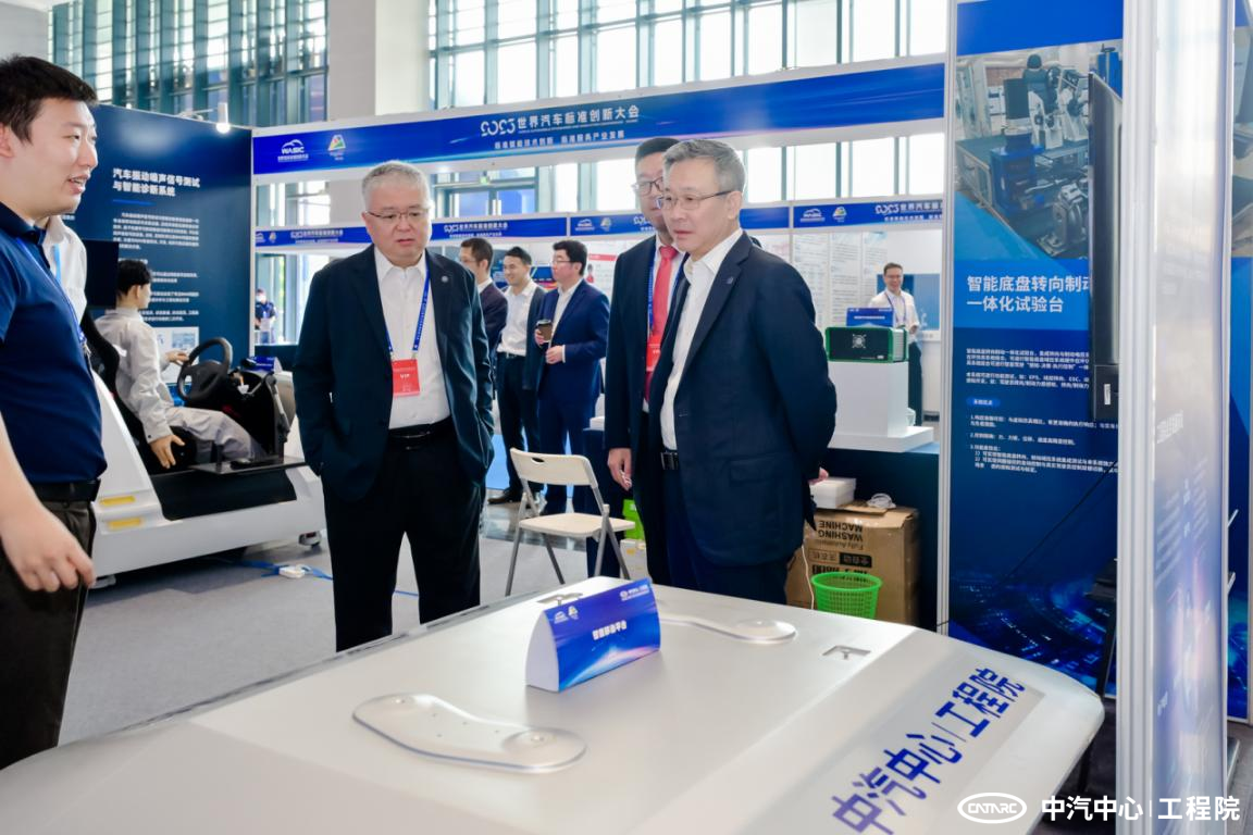 在工程院展臺,多位標準、檢測領域專家到訪,詳細聆聽了工程院在測試技術自有化、測試裝備國產化方面所做的各項工作,中汽中心黨委書記、董事長安鐵成表示,工程院要繼續深耕標準測試裝備的全鏈國產化和技術自有化,加快落實技術轉化與合作。