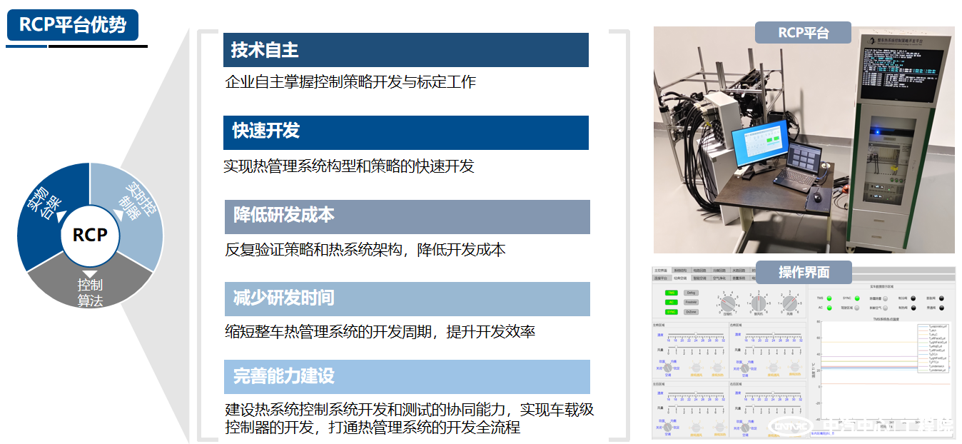 中汽中心工程院風(fēng)洞中心憑借多年整車熱管理系統(tǒng)的控制策略開發(fā)經(jīng)驗(yàn),建立了平臺(tái)化整車熱系統(tǒng)控制策略開發(fā)能力,為整車及熱系統(tǒng)零部件企業(yè)提供整車熱系統(tǒng)的控制策略仿真開發(fā)、控制策略快速控制原型及控制器硬件在環(huán)測(cè)試驗(yàn)證等,通過平臺(tái)化的開發(fā)方式,助力企業(yè)快速高效實(shí)現(xiàn)熱系統(tǒng)控制策略的自主開發(fā)。