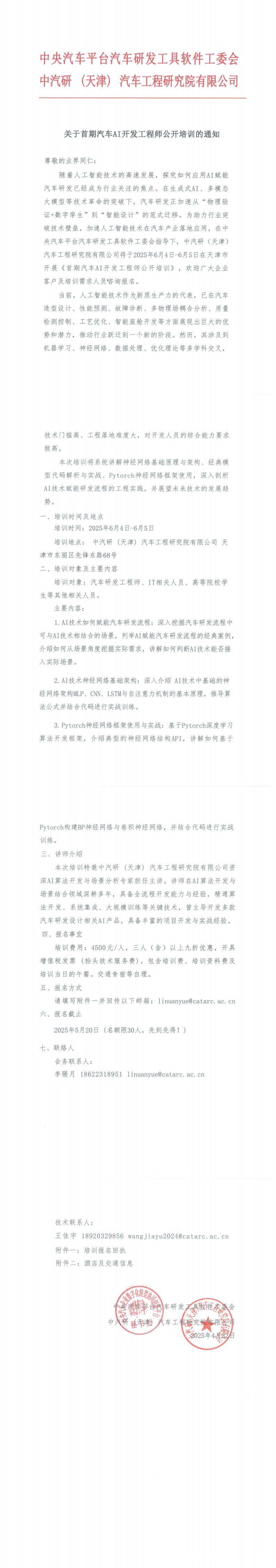 關于舉辦首期汽車AI開發工程師公開培訓的通知