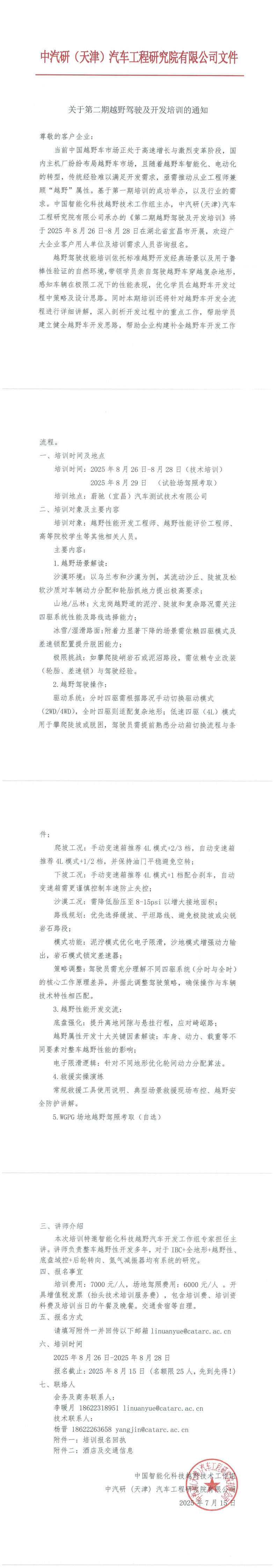 關于舉辦第二期越野駕駛及開發培訓的通知