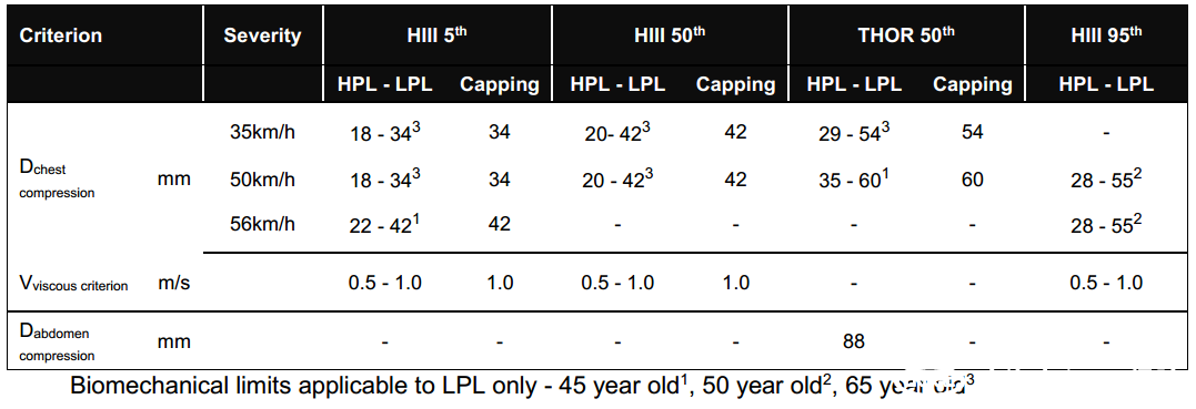 ⑤由于正面增加乘員多樣性評(píng)價(jià),對(duì)安全配置有一定的要求,需根據(jù)實(shí)際車(chē)型脈沖以及開(kāi)發(fā)目標(biāo),合理配備自適應(yīng)安全帶,自適應(yīng)氣孔氣囊,自適應(yīng)拉帶等高性能約束系統(tǒng)產(chǎn)品。