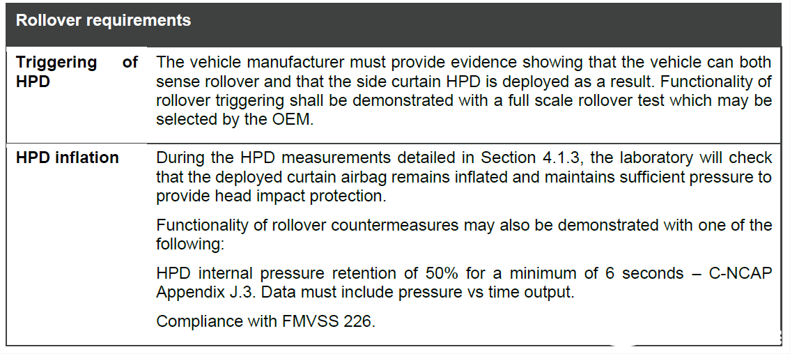 主要變化:0TO現(xiàn)作為評(píng)價(jià)項(xiàng)非罰分項(xiàng)。柱碰試驗(yàn)中增加翻滾要求,同時(shí)增加氣簾保壓要求。
