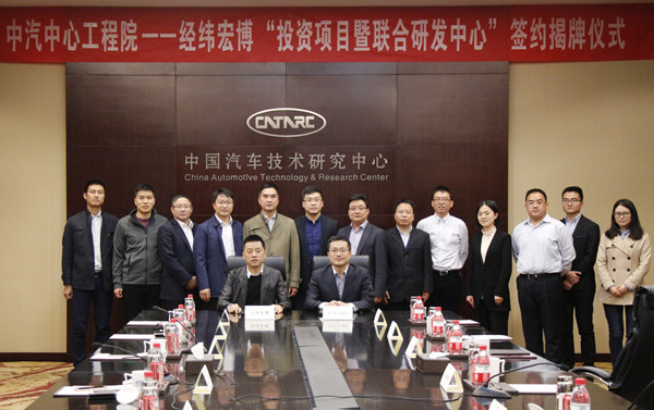2017年4月7日,中國汽車技術(shù)研究中心(下稱“中汽中心”)汽車工程研究院(下稱“工程院”)與江蘇經(jīng)緯宏博汽車零部件股份有限公司(下稱“經(jīng)緯宏博”)“投資項(xiàng)目暨聯(lián)合研發(fā)中心”簽約揭牌儀式成功舉行。江蘇省常州市金壇經(jīng)濟(jì)開發(fā)區(qū)副書記王勇、金壇區(qū)紀(jì)委主任蔣志軍、金壇區(qū)經(jīng)貿(mào)局局長黃建南,經(jīng)緯宏博董事長王金芳、經(jīng)緯宏博總經(jīng)理蔡雨宏,中汽中心工程院院長高繼東、副院長龔進(jìn)峰、總工程師李洪亮,璦睿投資管理有限公司總經(jīng)理胡濟(jì)民,常州開發(fā)部主任田涌君等領(lǐng)導(dǎo)參加了儀式。