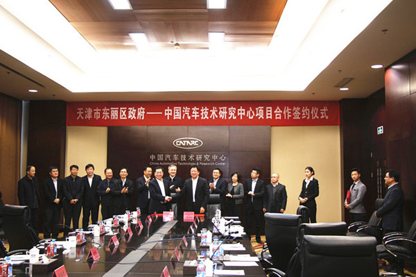 2015年11月26日,“天津市東麗區政府—中國汽車技術研究中心項目合作簽約儀式”成功召開。中國汽車技術研究中心黨委書記于凱、副主任高和生,天津市東麗區委書記尚斌義、區長楊茂榮、天津市東麗開發區管委會主任李光華等領導及中心相關部門領導出席了本次簽約儀式。簽約儀式由中國汽車技術研究中心汽車工程研究院院長高繼東主持。