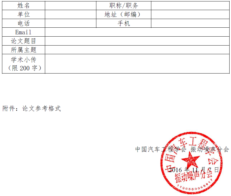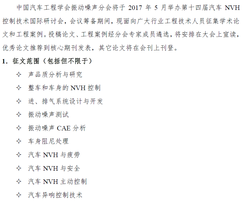 2017汽車NVH控制技術國際研討會征文啟事