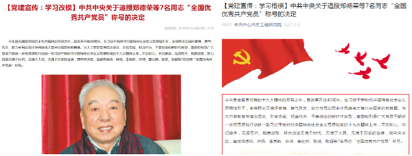 根據《中汽中心黨委關于學習鄭德榮等7名全國優秀共產黨員先進事跡的通知》要求,汽車工程研究院黨總支認真貫徹落實文件精神,開展一系列向先進典型人物學習活動。