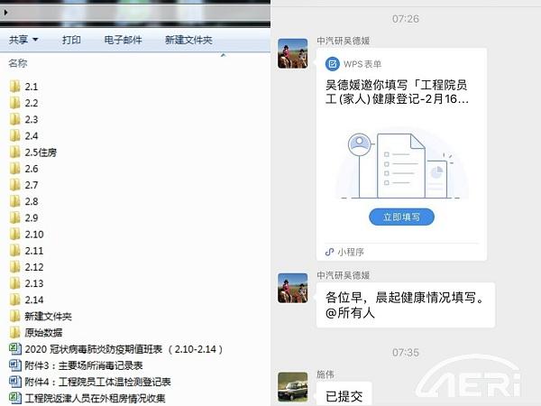 在此防疫工作中,她不計個人得失,疫情面前,使命必達。她是同事口中的“吳姐”,在各項工作中,總能看到她忙碌的身影。雖然返津后在家自我隔離,但她通過線上辦公方式,迅速投身到復工前后工程院防疫工作中。她作為工程院防疫工作聯絡負責人,根據中心的各項要求,負責全院外出人員信息統計、返程人員行程核對、員工每日健康數據收集、跟蹤等工作。每日的信息統計工作量大,但她沒有絲毫懈怠,耐心的記錄每一名同事的信息,并及時完成上傳下達的任務,積極協助院里防護物資的采購工作,現場監督員工公寓防控執行工作。